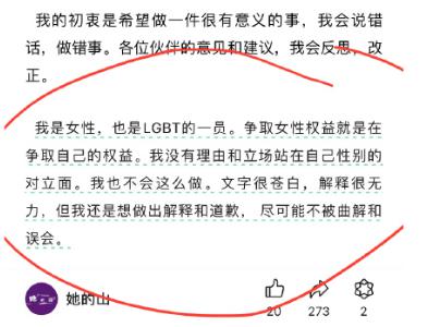 即使主辦方道歉,首先要說自己是女同性戀,永遠(yuǎn)不會(huì)愛男人,在表明立場之后,才有資格說下面的話。