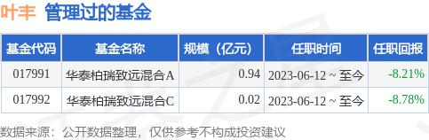 葉豐先生:博士畢業(yè)于中國(guó)社會(huì)科學(xué)院投資系。曾擔(dān)任中國(guó)國(guó)際工程咨詢公司主任科員、國(guó)家發(fā)展改革委投資司法部借調(diào)員、華泰柏瑞基金管理有限公司專戶投資主管、鼎峰資本管理有限公司投資經(jīng)理。2023年 年 6 華泰柏瑞致遠(yuǎn)混合型證券投資基金的基金經(jīng)理從月開始擔(dān)任?,F(xiàn)任華泰柏瑞致遠(yuǎn)混合型證券投資基金經(jīng)理。
