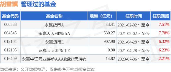 胡雪邈先生:碩士學(xué)位,中國國家。曾任交通銀行資產(chǎn)管理業(yè)務(wù)中心投資經(jīng)理,現(xiàn)任永勝基金管理有限公司固定收益投資部基金主管。2021 年 2 月 2 日起擔(dān)任永勝天天利貨幣市場基金主管。2021 年 2 月 2 日起擔(dān)任永勝貨幣市場基金主管。2023 年 7 月 6 當(dāng)天起擔(dān)任永勝中證同業(yè)存單。 AAA 指數(shù) 7 天持證券基金基金經(jīng)理。