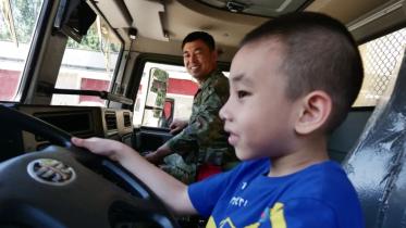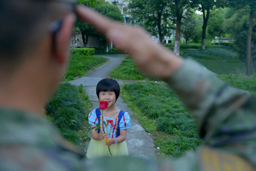 小軍娃向爸爸敬禮