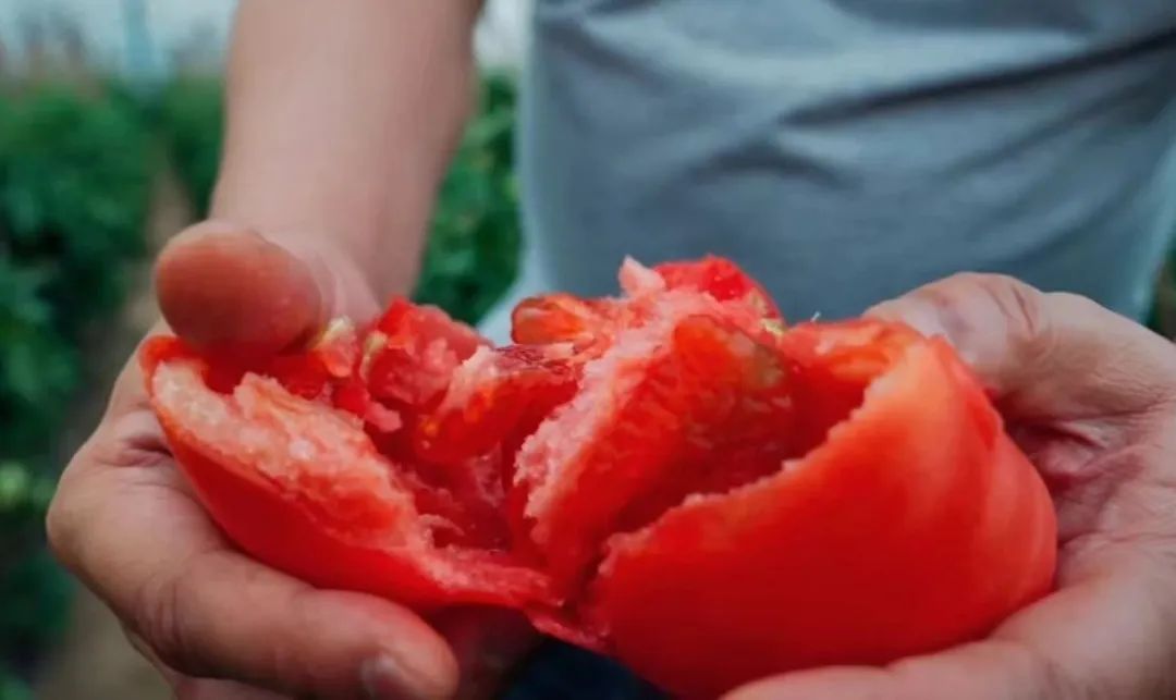 除了水果和玉米,園藝場的大番茄也受到廣大市民的高度贊揚?!斑@是小時候的西紅柿,沙沙作響,和糖一起吃?!卑盐骷t柿掰成兩半,就能看到細(xì)細(xì)沙沙的果肉,光看就讓人垂涎三尺。