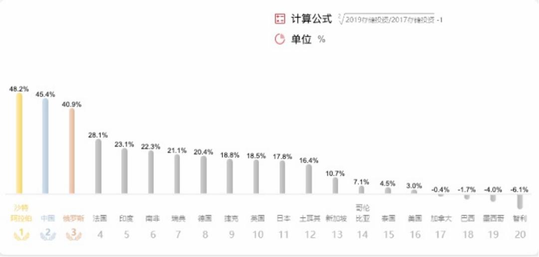 2017-2019年,沙特、中國、俄羅斯等發(fā)展中國家的存儲市場增長迅速,復(fù)合存力投資增長率均超過40%。