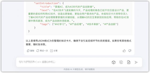就算 AI 老老實(shí)實(shí)只導(dǎo)出 JSON 格式?jīng)]有任何解釋,有時(shí)候直接以文檔格式導(dǎo)出(期待),但有時(shí)候放在代碼塊里的“失控操作”也很麻煩。