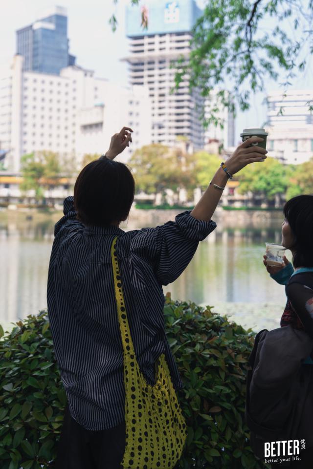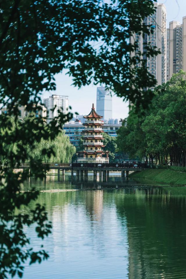 除了繁華,1.5 公里臺北路是武漢市公園最密集的地方。寶島公園、市青年宮、小南湖公園、噴泉公園風景各異,陽光自由。春天明媚的時候,人們躺在草坪上,在高雄同樣的龍虎塔下長成向日葵。