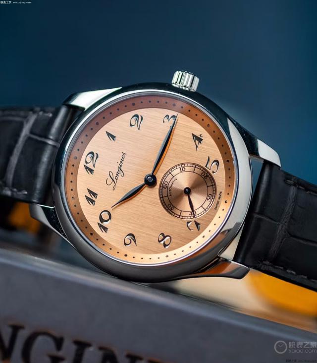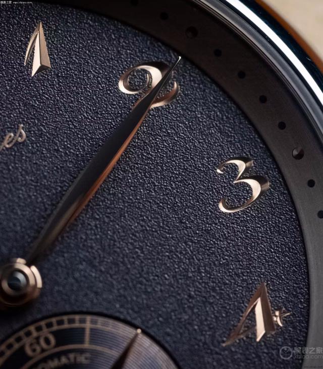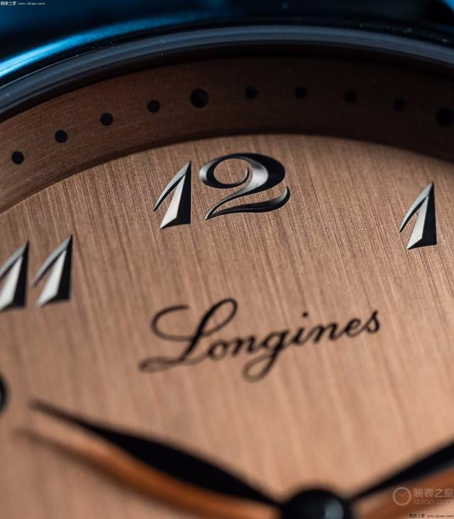 名匠 190 周年紀念日,最大的特點就是盤面上“雕刻”的寶璣字數(shù)時標。“”由激光雕刻的數(shù)字形成 V “形狀凹陷,數(shù)字表面光滑溫和,雕刻的數(shù)字在不同角度的光線下具有良好的反光效果。雕刻的數(shù)字時標不僅在同級浪琴中從未出現(xiàn)過,在更高級的名表中也是極其罕見的,大大提升了浪琴名匠的藝術成分。盤面裝飾有垂直拉絲、顆粒兩種。小三針款的細節(jié)比較多,小秒盤裝飾有唱片紋,更神奇的是,浪琴還給名匠 190 周年三針配上“三文魚”盤面,這是資深玩家最喜歡的配色方案。雖然,近年來,“三文魚”配色已從最早的百達翡麗傳播到更多的名表,但能夠出現(xiàn)在浪琴大師身上,仍然是值得稱贊的。