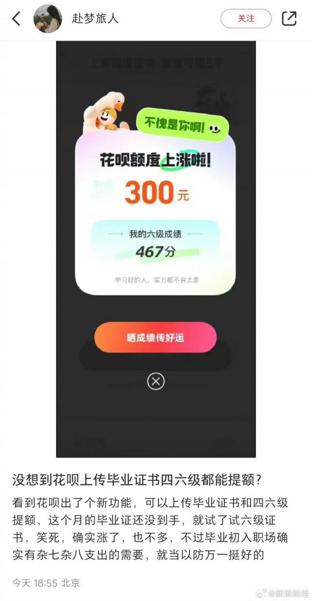 花唄花樣勸學(xué)!網(wǎng)民曬出新高度的證卷
