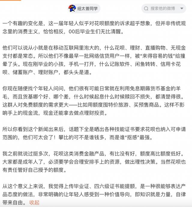 今日,微博上出現(xiàn)了一個破千萬的話題。 # 上傳文憑四六級征可花唄提額 #。