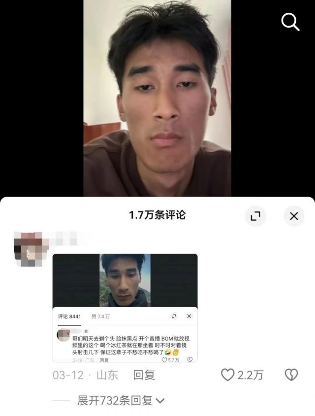 今年 2 月亮,一個(gè)瘦長臉的小伙子 @云南阿輝 我在短視頻平臺(tái)上發(fā)了一張自拍。因?yàn)榭雌饋硐裰餍强票龋u論區(qū)的專家不得不給我一些建議:“哥們明天剃光頭,擦黑臉,開直播,時(shí)不時(shí)對著鏡頭肘擊兩下,保證這輩子不愁吃喝。”