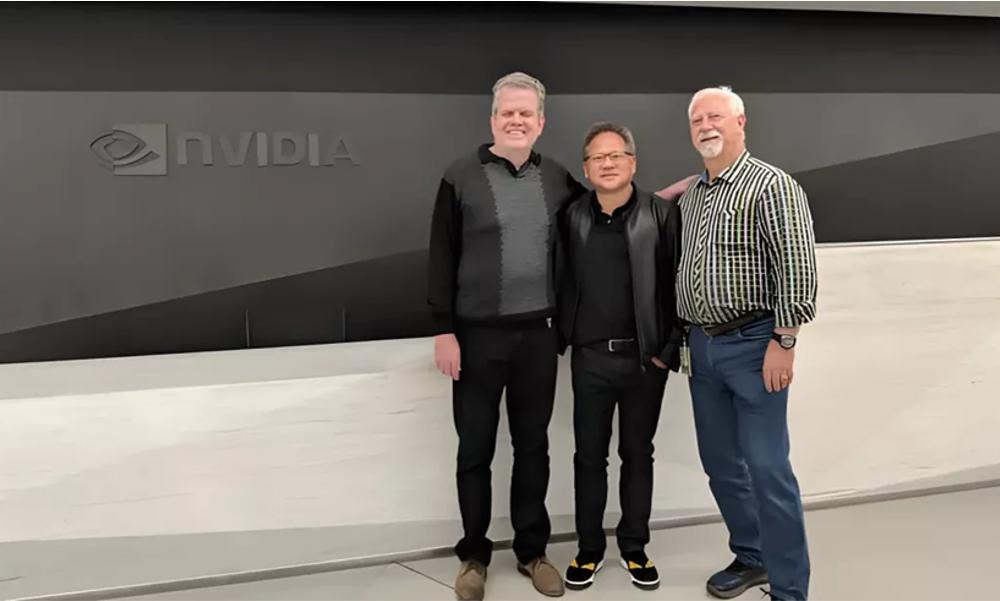 ▲最近,英偉達(dá)三位創(chuàng)始人合影,從左到右:普里姆、黃仁勛、馬拉喬斯基(來(lái)源:英偉達(dá))