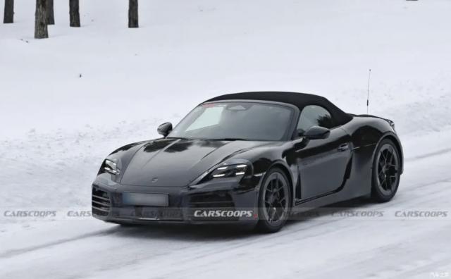 按照之前曝光的諜照,保時捷純電動版 718 Boxster 整體造型看上去像一個短軸距。 Taycan 軟頂敞篷版,尤其是大燈組的造型, Taycan 設計風格非常相似。新車的車頂線條連接到尾端后呈現(xiàn)出快背造型,除黑色車身外,車輪也采用了黑化處理。