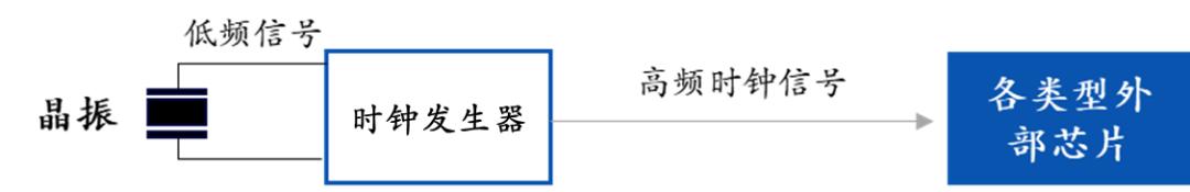 在設(shè)備運行過程中,時鐘振蕩器可以首先提供一個固定的、低頻的時鐘信號,時鐘發(fā)生器可以將信號調(diào)整到每個芯片所需的不同頻率并輸出。