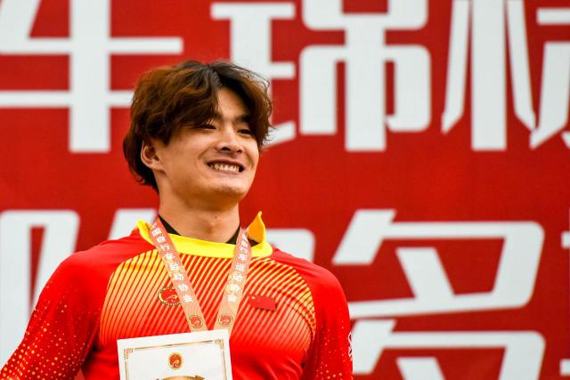 郝然在最高領獎臺上,發(fā)型像個老朋友。