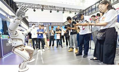 最美機(jī)器人 中國移動仿生機(jī)器人“小七”是整個博覽會的藝術(shù)家。它的表情和動作非常像真人,而且“知識淵博”。無論觀眾提出什么問題,它都能得到適當(dāng)?shù)幕卮穑S時隨地都有一群“粉絲”圍繞著它。