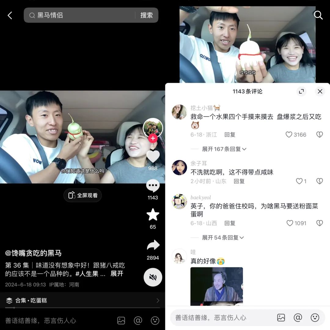 黑馬,貪吃@貪吃 在視頻中,他們兩個仍然經(jīng)常出現(xiàn)。他們把鏡頭對準(zhǔn)食物,試圖轉(zhuǎn)移網(wǎng)友的注意力。然而,由于他們的表現(xiàn)太小,他們?nèi)匀粺o法逃脫網(wǎng)民的批評。