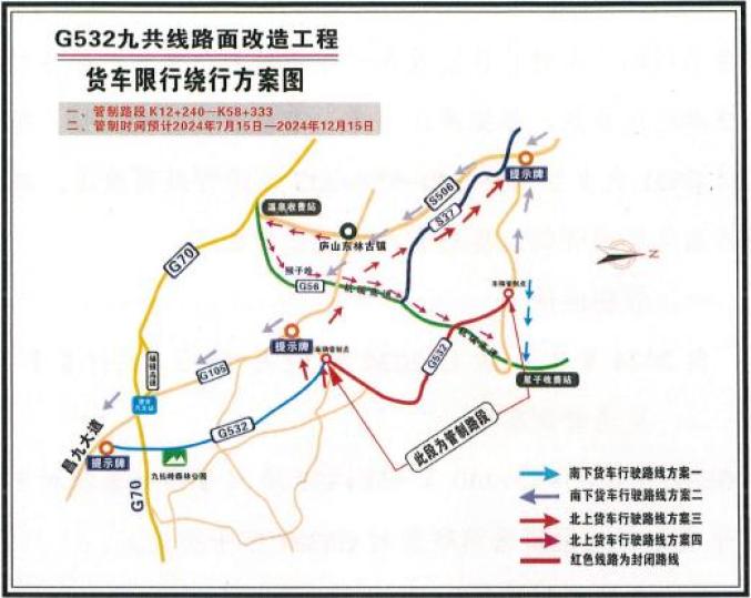 根據(jù)廬山市委、市政府的計(jì)劃安排,為消除G532九共線部分安全隱患,提高安全保障水平,改善沿線道路交通體驗(yàn)和居民生長(zhǎng)環(huán)境,更好地服務(wù)廬山旅游經(jīng)濟(jì)發(fā)展,擬近期對(duì)G532九共線K42 240——K58 路面改造333段,施工期間實(shí)行交通管制,現(xiàn)將有關(guān)事項(xiàng)公告如下: