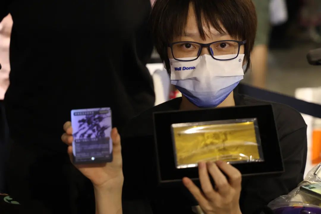 活動(dòng)最后一天,萬智牌展臺(tái)還舉辦了上?!艾F(xiàn)代新篇3”金獅杯限量賽,吸引了16名玩家齊聚一堂,爭(zhēng)奪冠軍。最后,來自M3卡牌俱樂部的程瑞麟獲得了第一名,并獲得了001號(hào)的限量足金票。余夫、袁祺和貓龜分別獲得了三張相應(yīng)的金牌票。