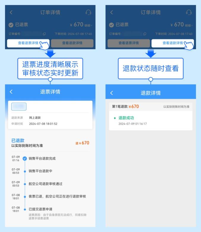 鐵路12306機票此次提升新增退款及退款進度查詢,一目了然地掌握了退款、退款流程的全動態(tài)。