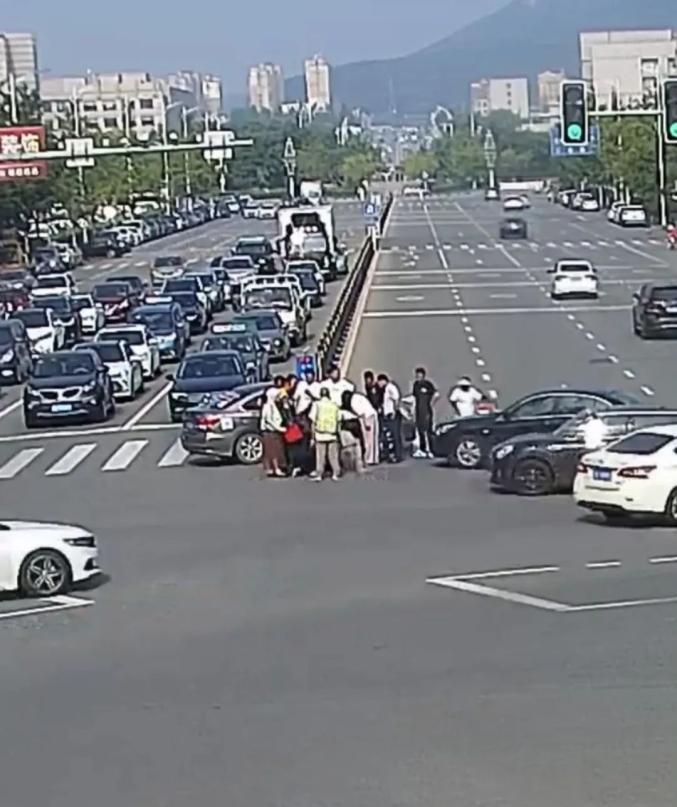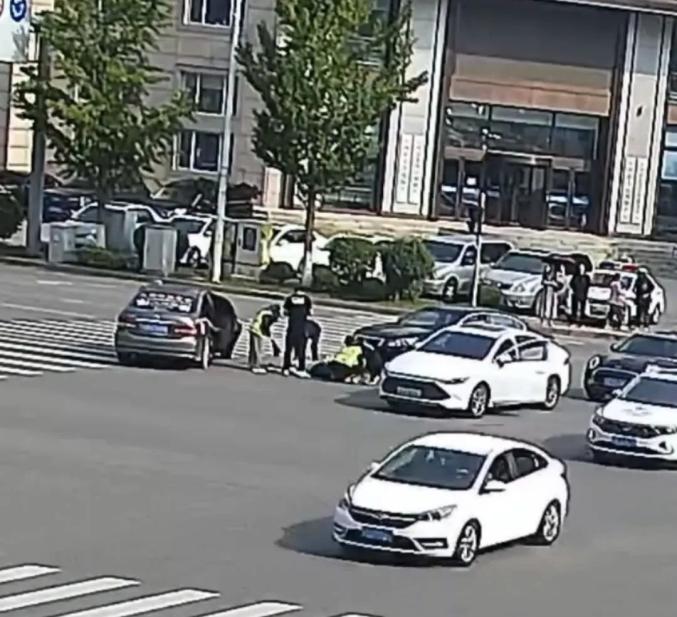 后來,一位老人碰巧騎著自行車經(jīng)過斑馬線。發(fā)現(xiàn)情況后,他立即把車推到路邊,跑過來幫忙。然后,幾個(gè)等紅燈的司機(jī)停下來,上前幫忙。