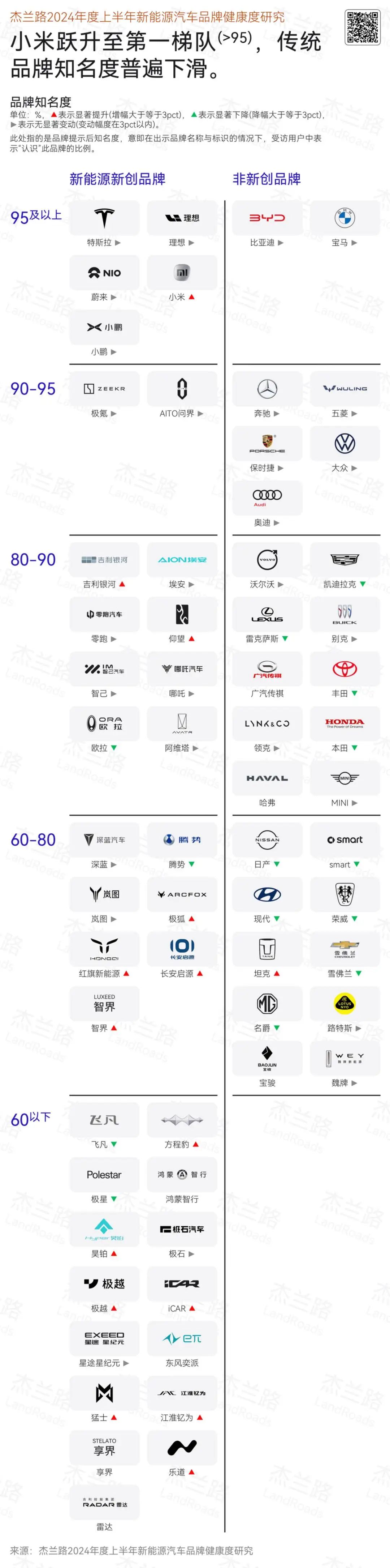 月初,第三方研究機構(gòu)杰蘭路發(fā)布了一份關(guān)于汽車品牌建設的調(diào)查報告——杰蘭路 2024 新能源汽車品牌健康年度上半年研究。