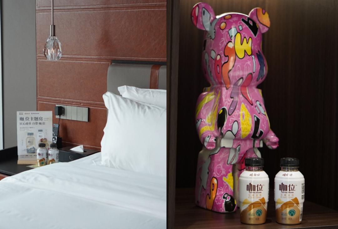 “咖啡位置”是娃哈哈在2023年推出的一種咖啡產(chǎn)品。在“咖啡位置主題房”中,娃哈哈精心設(shè)計了一系列與咖啡文化密切相關(guān)的元素。房間內(nèi)的照片墻、枕頭等裝飾都以“咖啡位”為主題,營造出濃郁的咖啡氛圍。更令人驚訝的是,每一位入住的顧客都會免費獲得一杯咖啡拿鐵,將咖啡的香氣與房間的溫暖完美結(jié)合,為咖啡愛好者帶來難忘的互動體驗。