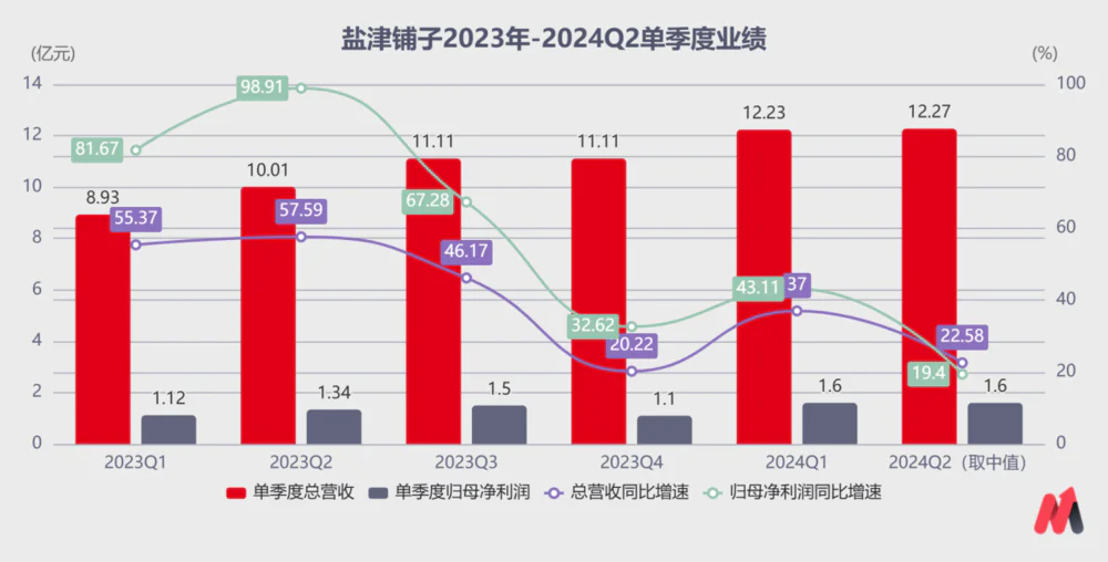 2024年第二季度,根據(jù)公司發(fā)布的業(yè)績(jī)預(yù)測(cè),鹽津店預(yù)計(jì)營(yíng)收將達(dá)到11.77億~12.77億元,同比增長(zhǎng)17.5%~27.5%;預(yù)計(jì)歸母凈利潤(rùn)約為1.5億~1.7億元,比去年同期增長(zhǎng)12.1%-27.0%;扣除非歸母凈利潤(rùn)為1.22億~1.42億元,比去年同期增長(zhǎng)-8%~7.05%。