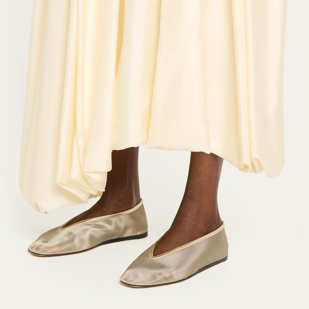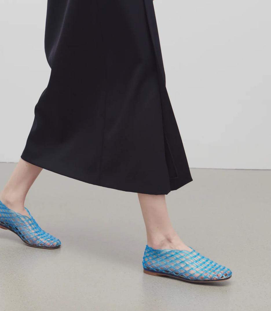 漁網(wǎng)鞋(mesh flats),正如其名稱所示,flats平跟鞋是由各種mesh表面材料制成的,包括ALALA?像A這樣喜歡釣大魚的粗網(wǎng),也有THE這樣的 ROW是一種精致的紗布,喜歡篩選河蝦。材料和孔大小的差異決定了一雙漁網(wǎng)鞋能從海里撈出什么樣子和手感。