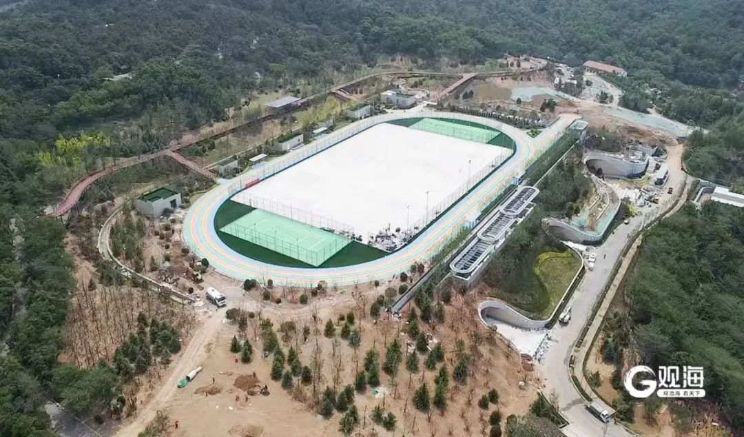 位于風景秀麗的浮山森林公園西坡的浮山全民健身中心,是青島最大的覆綠全民健身中心。該項目的設計理念是“消隱、賦能”,總建筑面積達32291.57平方米,共分為雙層。其中,一樓有40個羽毛球場、4個籃球場等運動場館;一樓為停車場,共提供195個停車位。另外,屋頂巧妙地置入了一片“十一人制足球場”、2個網(wǎng)球場和400米跑道,讓市民在運動中盡情享受大自然之美。