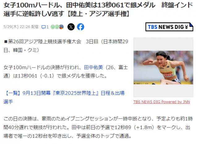 北京時(shí)間 5 月 29 日,2025 年第 26 今年的田徑亞錦賽繼續(xù)在韓國(guó)龜尾舉行。女子 100 在米欄決賽中,亞拉吉在上一屆比賽中獲得了冠軍。 12 秒 日本田中佑美以96(-0.1)衛(wèi)冕。 13 秒 061 摘銀,吳艷妮以 13 秒 068 獲得銅牌。本來(lái)這是田中佑美和吳艷妮亞洲第一姐妹之間的一場(chǎng)爭(zhēng)斗,但最終還是出現(xiàn)了蛤蜊與漁民爭(zhēng)奪利潤(rùn)的場(chǎng)景。更讓人擔(dān)心的是,日本媒體賽后第一時(shí)間報(bào)道。從標(biāo)題到內(nèi)文,只是說(shuō)田中佑美。 13 秒 061 摘銀的缺點(diǎn),整篇文章沒(méi)有提到“吳艷妮”三個(gè)字一次。
