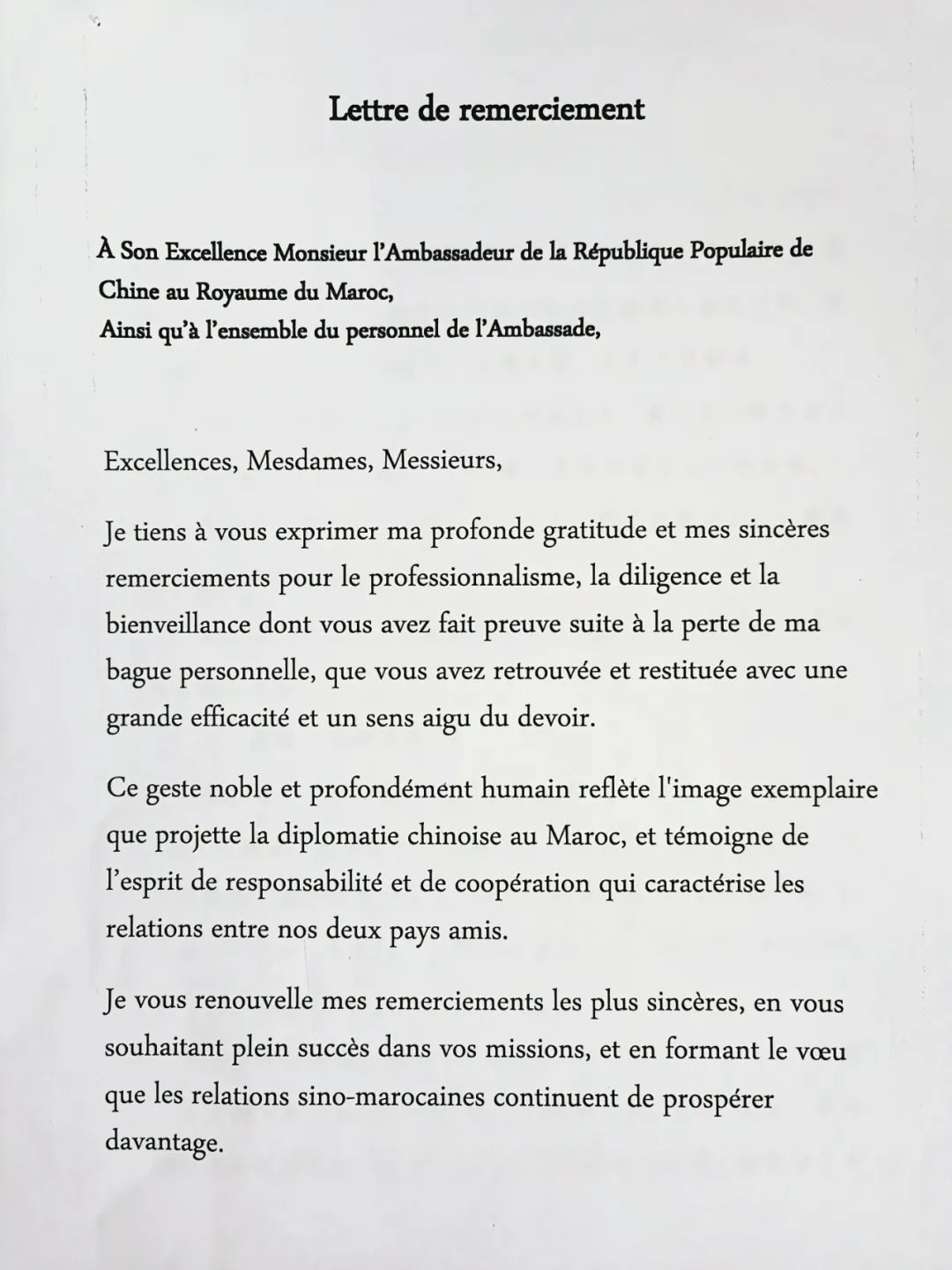 法塔維表示,2023年7月,摩托車(chē)發(fā)生了罕見(jiàn)的強(qiáng)震。中國(guó)駐摩托車(chē)大使館首次組織華僑前往馬拉喀什災(zāi)區(qū)進(jìn)行救災(zāi)活動(dòng),為當(dāng)?shù)厝嗣袼腿ド畋匦杵贰?zāi)區(qū)的人們總是記住這種友誼。當(dāng)?shù)嘏允止ぞ幙椢逍羌t旗掛毯,向中國(guó)駐摩托車(chē)大使館贈(zèng)送,以示衷心的感謝。法律表示,他多次赴華開(kāi)展經(jīng)濟(jì)文化交流活動(dòng),深深感受到中國(guó)摩托車(chē)的人文交流越來(lái)越密切。在申請(qǐng)赴華簽證期間,他親身感受到了大使館領(lǐng)事服務(wù)的便利,并稱(chēng)贊了領(lǐng)事官員嚴(yán)謹(jǐn)?shù)淖黠L(fēng)和熱情的態(tài)度。