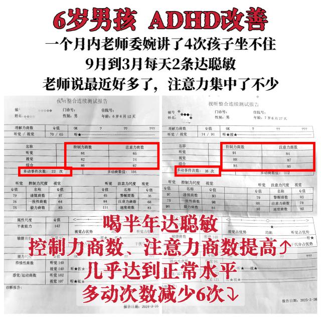 6 歲男孩喝了半年達聰敏,控制能力,注意力都有指標性的提高。