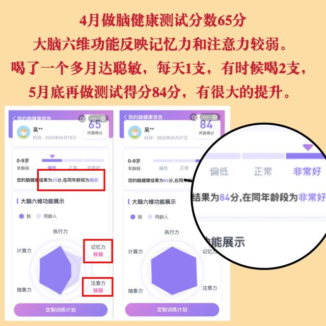 有些孩子喝了一個多月才聰明起來,腦健康從 65 分提升到 85 分。