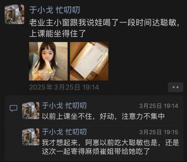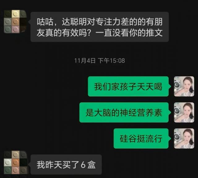 就像我們家老多老業(yè)主為自己,給孩子健腦,都會喝達聰敏,忙著跟咕咕反饋,孩子上課注意力提高。