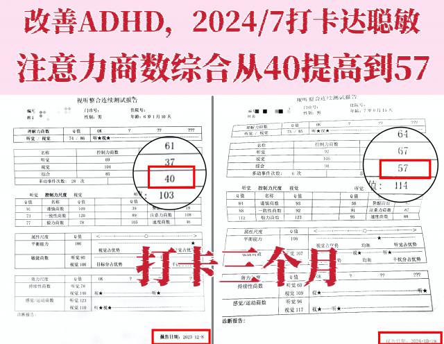 7 小孩,打卡 3 個月聰明,注意力敏銳。 40 提高到了 57。