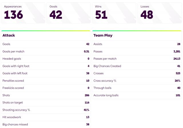 上個賽季,姆貝莫受傷,只打了一場比賽。 25 場上英超,但是他還是有的 9 個進球和 7 次助攻。值得注意的是,他的傷缺與托尼因違反英足總賭博規(guī)則而被禁賽。 8 月份重疊。