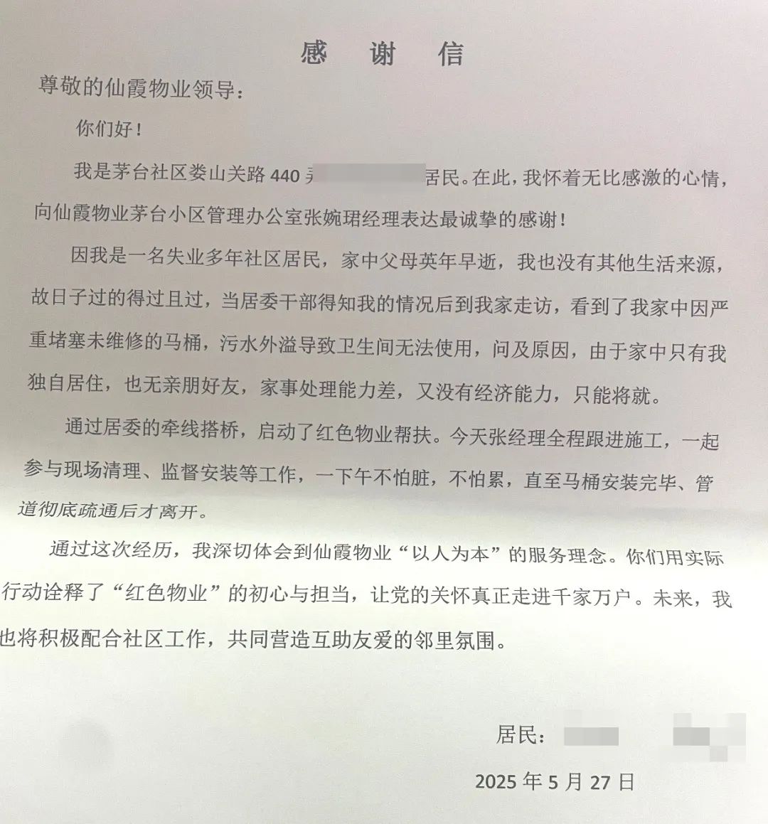 在常規(guī)走訪過程中,仙俠慧生活物業(yè)茅臺社區(qū)的管理員通過社區(qū)居委會(huì)了解到,社區(qū)內(nèi)一個(gè)困難居民家中的廁所年久失修,沖水失靈,底座漏水,日常生活極其不便。然而,維修甚至更換廁所對他們來說是一個(gè)沉重的經(jīng)濟(jì)負(fù)擔(dān)。
