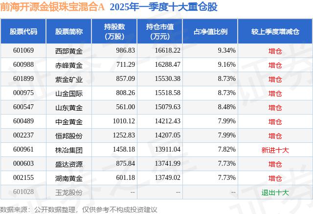 前海開源金銀珠寶混合 A 前十大重倉股如下: