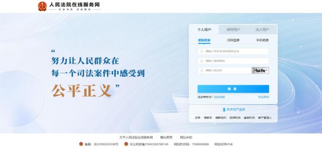 借款人可以通過人民法院在線服務(wù)進(jìn)入人民法院在線服務(wù)系統(tǒng)登錄頁面。(網(wǎng)站:https://zxfw.court.gov.cn/zxfw系統(tǒng)登錄頁面如下圖1所示: