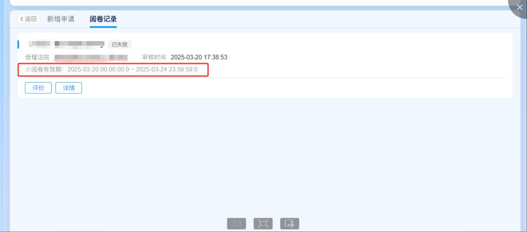 點(diǎn)擊“閱卷記錄”查看閱卷有效期,有效期內(nèi)可通過手機(jī)在線查看訴訟檔案。如下圖5所示: