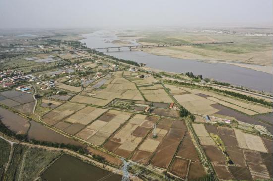 這是 5 月 28 每天拍攝的巴彥淖爾市淞口縣境內(nèi)田地(無人機(jī)照片)。新華社記者 李志鵬 攝