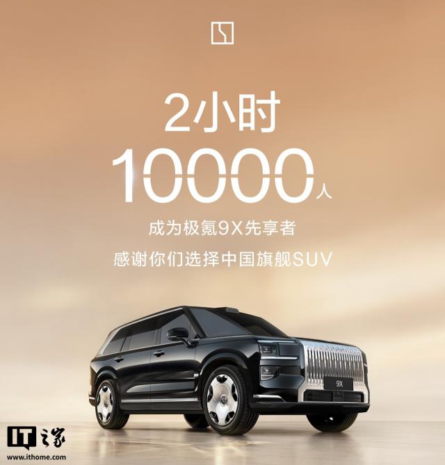 今日凌晨,極氪官方公布了“先享計劃”的成果,計劃啟動2小時,就已有1萬人加入極氪9X先享計劃。