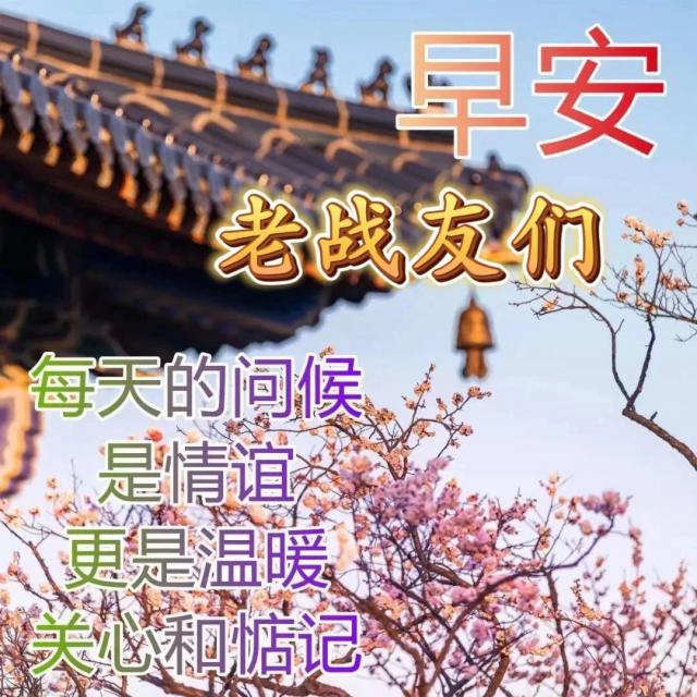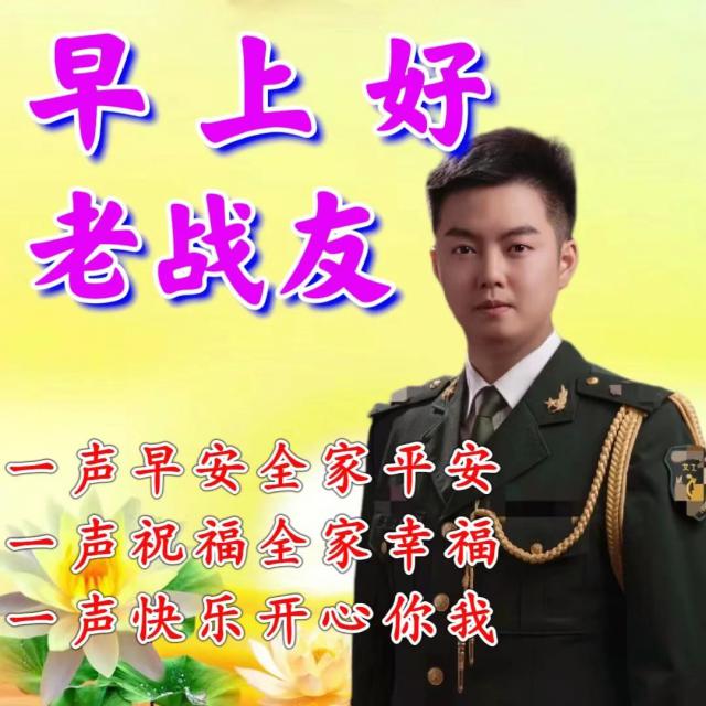 早上好,新的一天開始了,祝各位老戰(zhàn)友們:平安好運時刻籠罩著你;健康快樂每天陪伴著你;幸福吉祥永遠圍繞著你。身體健康,一切都好,心想事成,萬事如意!
