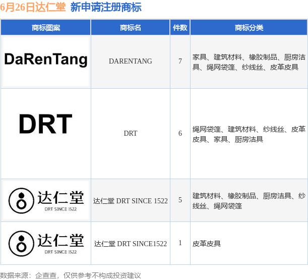 達(dá)仁堂新申請19件商標(biāo)注冊,多項數(shù)據(jù)展現(xiàn)企業(yè)情況