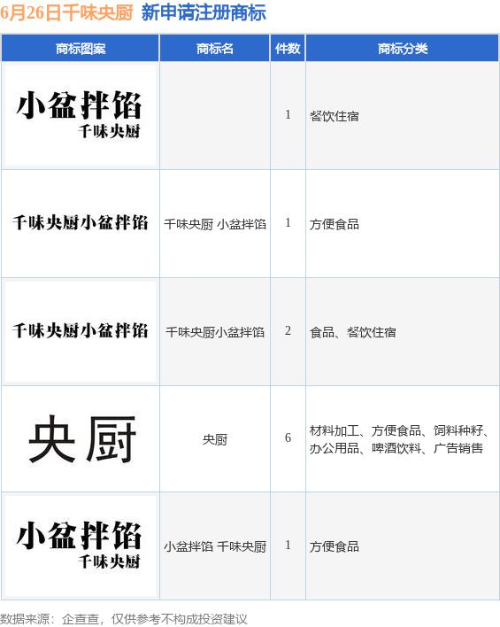 千味央廚新提交11件商標(biāo)注冊(cè)申請(qǐng)