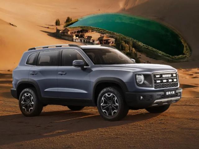 車身側面采用了分離式腰線設計,官方宣稱“以「鳴沙山、月牙泉」沙丘曲線重構車身腰線”。此外,該車還配備了天際之光貫穿式尾燈,其靈感源自海平面破曉時分的天際線。尾燈中央的標識由“ HAVAL ”更換為代表長城集團的“ GWM ”字母標識。