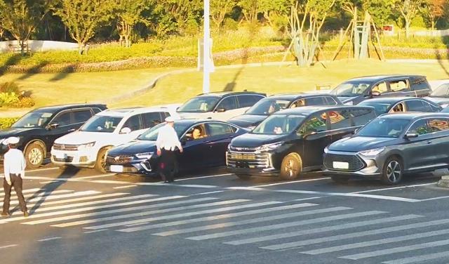 公共視頻顯示,當(dāng)時(shí)民警正在路口疏導(dǎo)交通,一輛黑色轎車?yán)锏鸟{駛員搖下車窗招手呼救。