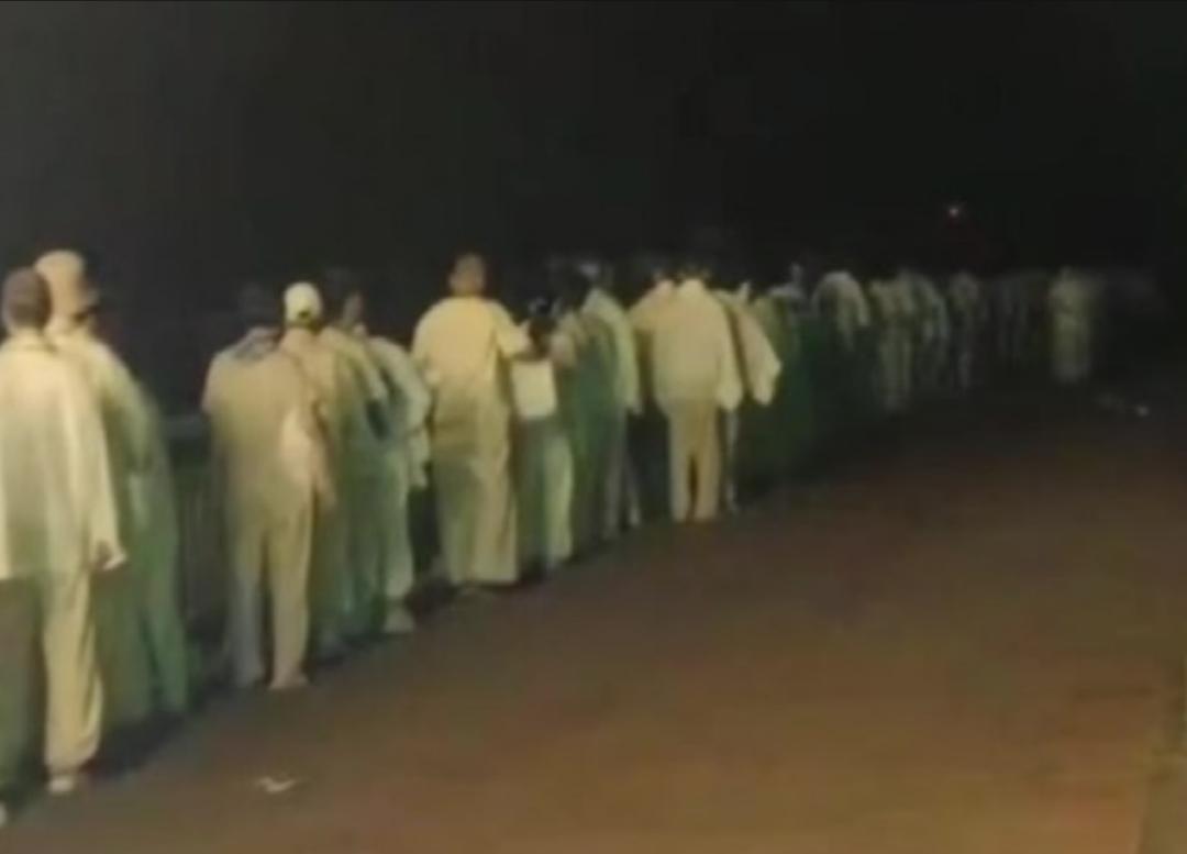 凌晨4時(shí)許,多名身穿白衣的居民在道路上行走。瀟湘晨報(bào)視頻截圖