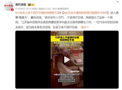 七旬老人舍不得開空調(diào)熱到神智不清,@現(xiàn)代快報(bào)截圖
