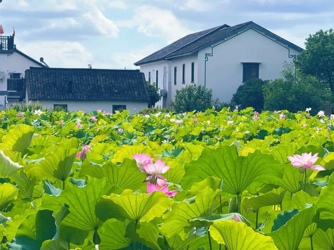 蓮湖村大規(guī)模種植荷花已有十多年。今年荷花盛開(kāi)時(shí),蓮湖村憑借“滬派江南”特色水鄉(xiāng)資源,舉辦了“觀蓮節(jié)”活動(dòng),吸引了華為等企業(yè)青年人才、親子家庭和各地游客前來(lái)鄉(xiāng)村游玩。在千畝荷塘旁,身著漢服的愛(ài)好者們展現(xiàn)著詩(shī)意典雅的服飾之美,與荷塘美景相得益彰。