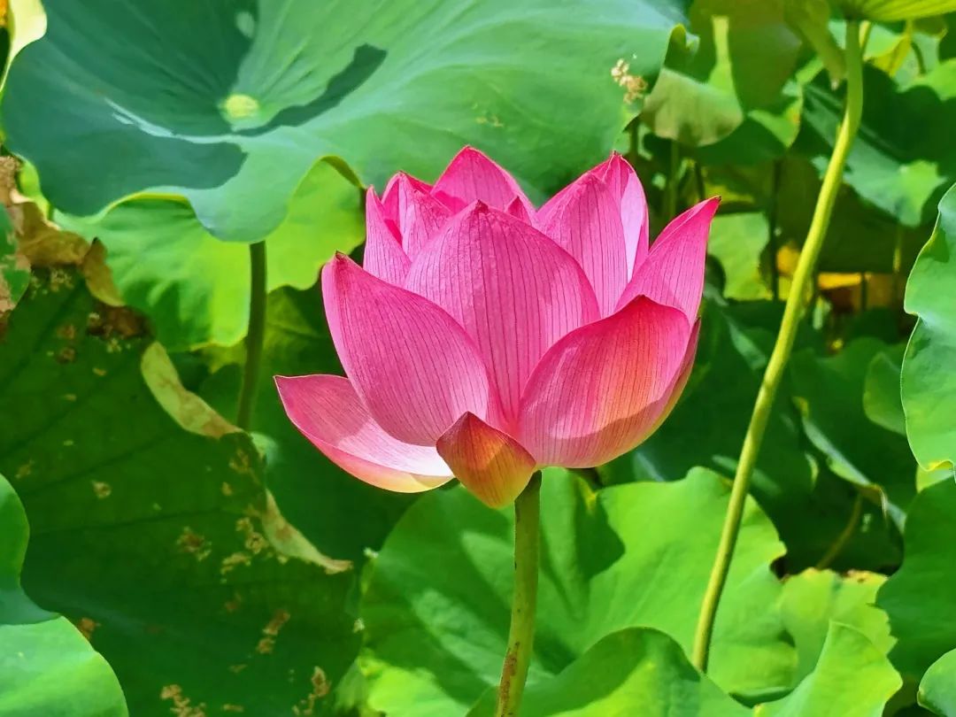 踏入蓮湖村,滿眼皆是荷葉鋪就的碧綠波浪。碧波之上,幾十種紅的、白的荷花亭亭玉立、搖曳多姿,為蓮湖村增添了雅致與韻味。沿著田埂漫步,欣賞滿塘新荷依次開(kāi)放,既有“接天蓮葉無(wú)窮碧,映日荷花別樣紅”的如畫(huà)意境,又有“小荷才露尖尖角,早有蜻蜓立上頭”的趣味,身處其中,目之所及皆是美景。蓮湖村村民諸興弟表示:“盛花期已至,現(xiàn)在是賞荷的最佳時(shí)候。這幾天天氣不錯(cuò),有風(fēng)有雨滋潤(rùn)著荷花,讓花朵更加鮮艷、色彩更加均勻。”