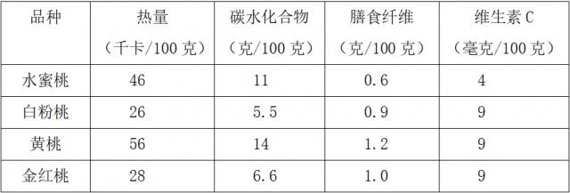 不同品種桃子營(yíng)養(yǎng)成分比較 數(shù)據(jù)來(lái)自《中國(guó)食物成分表(第 6 版)》
